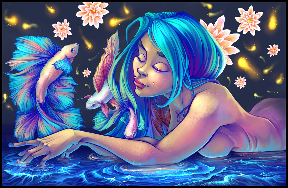 Saw some Betta fish and this image would not leave my head. I've been obsessed with water since I was a child and will take any chance to draw it.